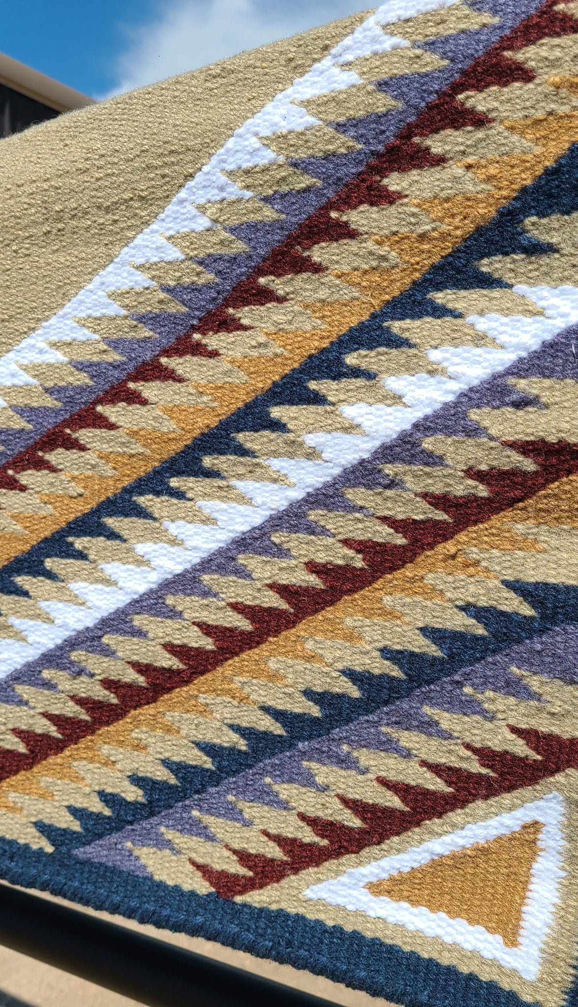 A simple and stunning pattern featuring navy and burgundy on a taupe base, measuring approximately 34x40 contoured fit on the highest quality available